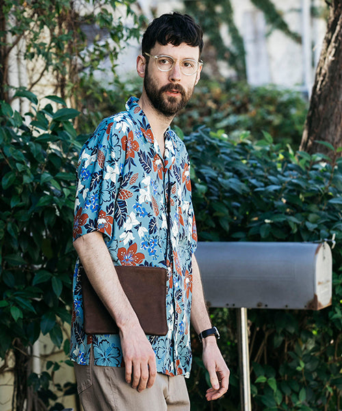 Small size horizontal sacoche with a size that is suitable for carrying a long wallet and smart phone.It also features a zip for easy access and storage of personal belongings. The length of the shoulder strap can be adjusted with a waxed cord.